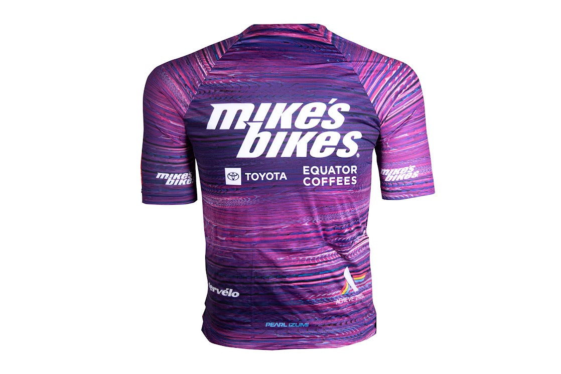 Introducing the Team Mike's Bikes Replica Jersey - a custom replica of our team's jersey. Experience the same high-quality materials and design as worn by our team. Show off your support and style with this exclusive jersey. Available now in limited quantities.